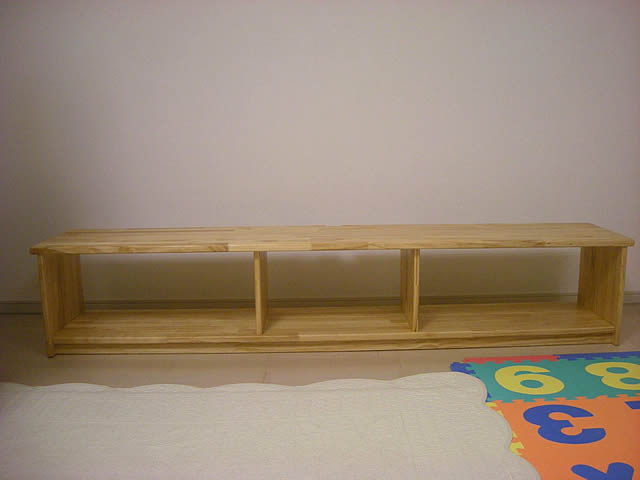 大きい分、組立てにご苦労されたようですが、その甲斐あって永く使えそうな出来栄えですね。また使うほどに味がでそうな木製ローボードです。